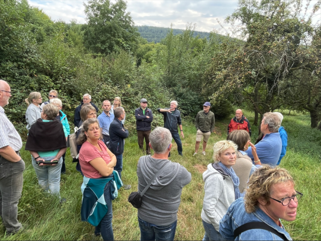 In diesem Jahr jährt sich die erste urkundliche Erwähnung der heutigen Weinbergslage „Hundsrück“ zum 500sten Male. Grund genug für den Weinbauverein in Kooperation mit dem Obst- und Gartenbauverein zu zwei Führungen am Samstag, 23. August einzuladen, um diese besondere Kulturlandschaft neu zu entdecken. Streuobst- und Weinanbau wechseln sich ab und engagierte Weinbaubetriebe stellen die Trockenmauern neu her. Eine kleine Weinverkostung am Pavillon rundete die jeweilige Führung ab.