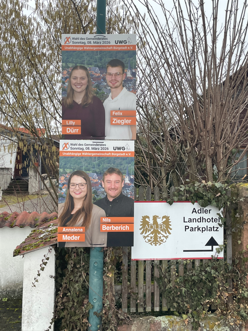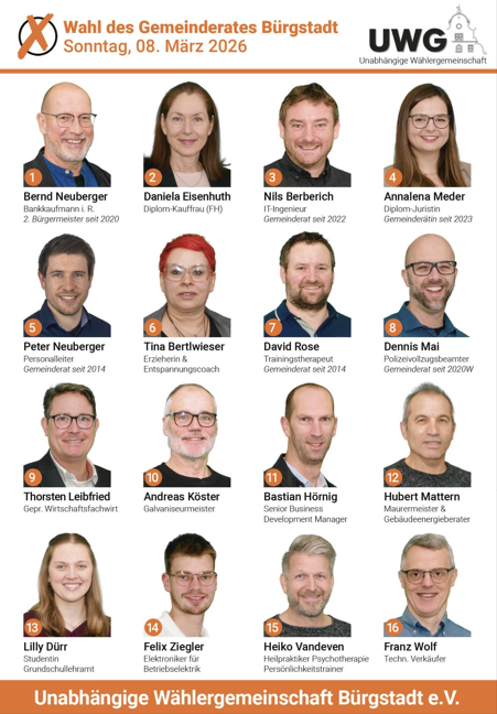 Wir bitten Sie um Ihre Stimmen für die Kandidatinnen und Kandidaten der Unabhängigen Wählergemeinschaft Bürgstadt, UWG.