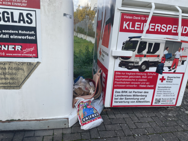 Unter der Rubrik „Muss das sein?“ möchten wir immer wieder mal auf größere oder kleinere Missstände hinweisen. Zum einen ist da die Sache mit dem nicht fachgerecht entsorgten Hundekot, zum anderen kommt es immer wieder vor, dass bei den im Ortsbereich aufgestellten Sammelbehälter für Glas und Kleidung Unrat abgelagert wird, der dort nichts zu suchen hat. Das Foto zeigt die Container im Unteren Steffleinsgraben mit den Ablagerungen. „Muss das sein – NEIN“